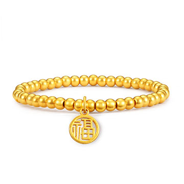 中国黄金 足金无相佛珠黄金弹力绳手链50克 50g