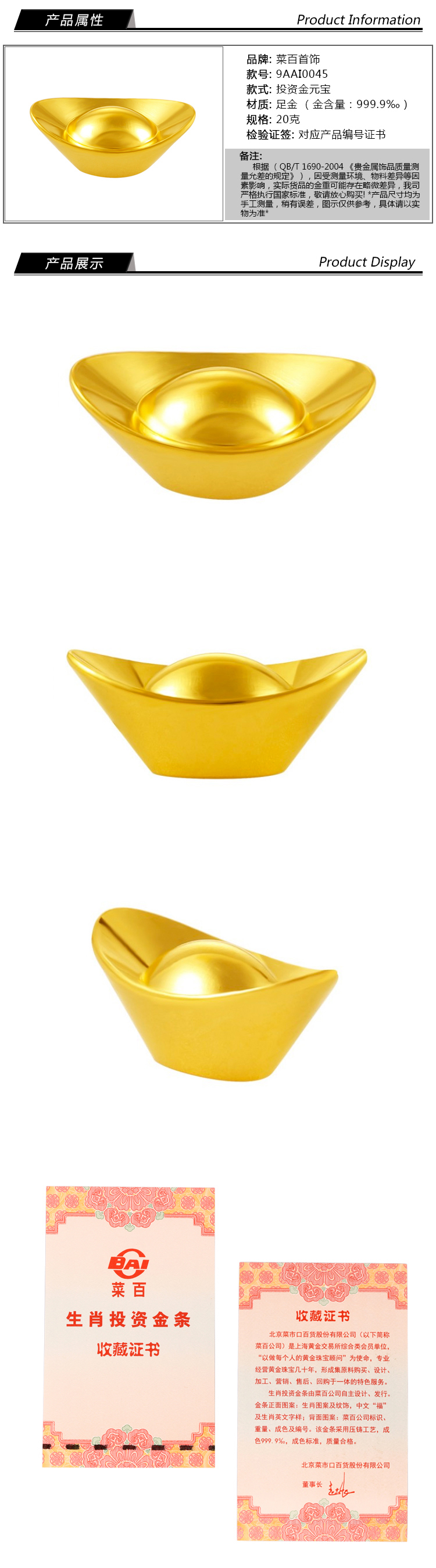 20克投资金元宝 Au9999黄金