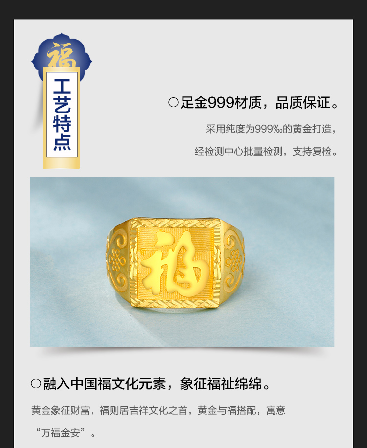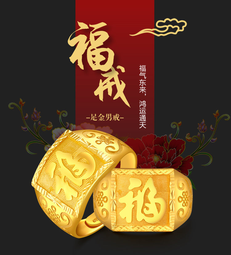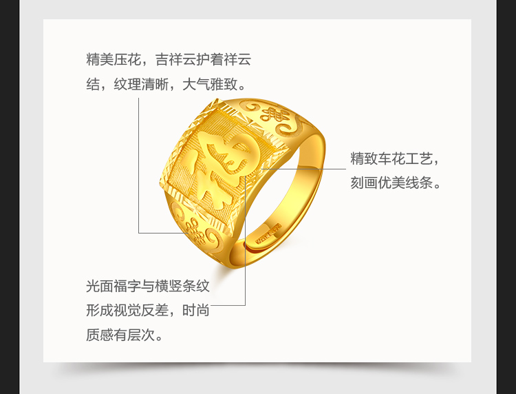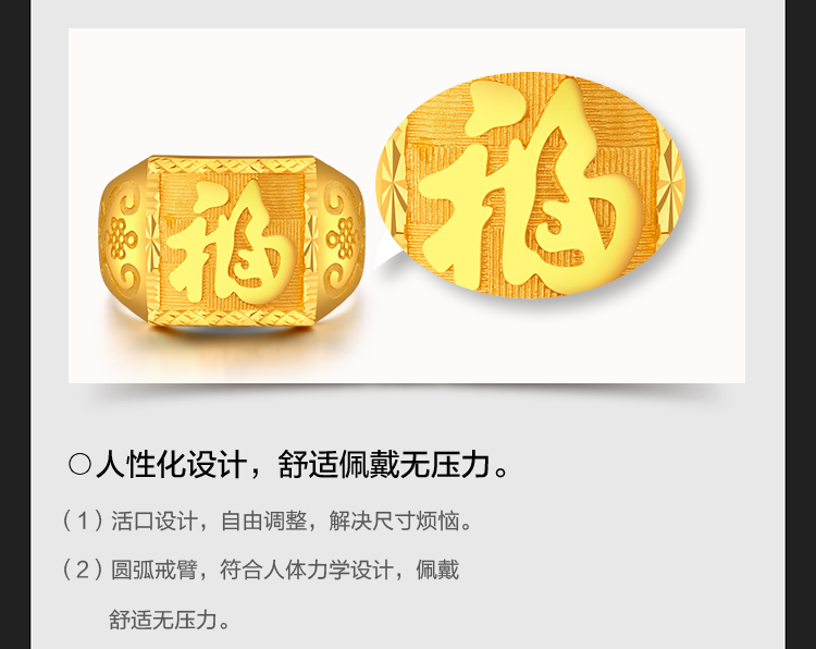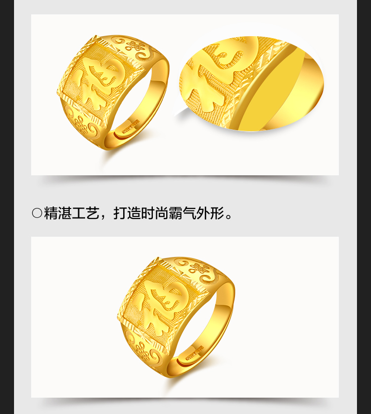 黄金戒指 男款足金活口戒指 约9.65克